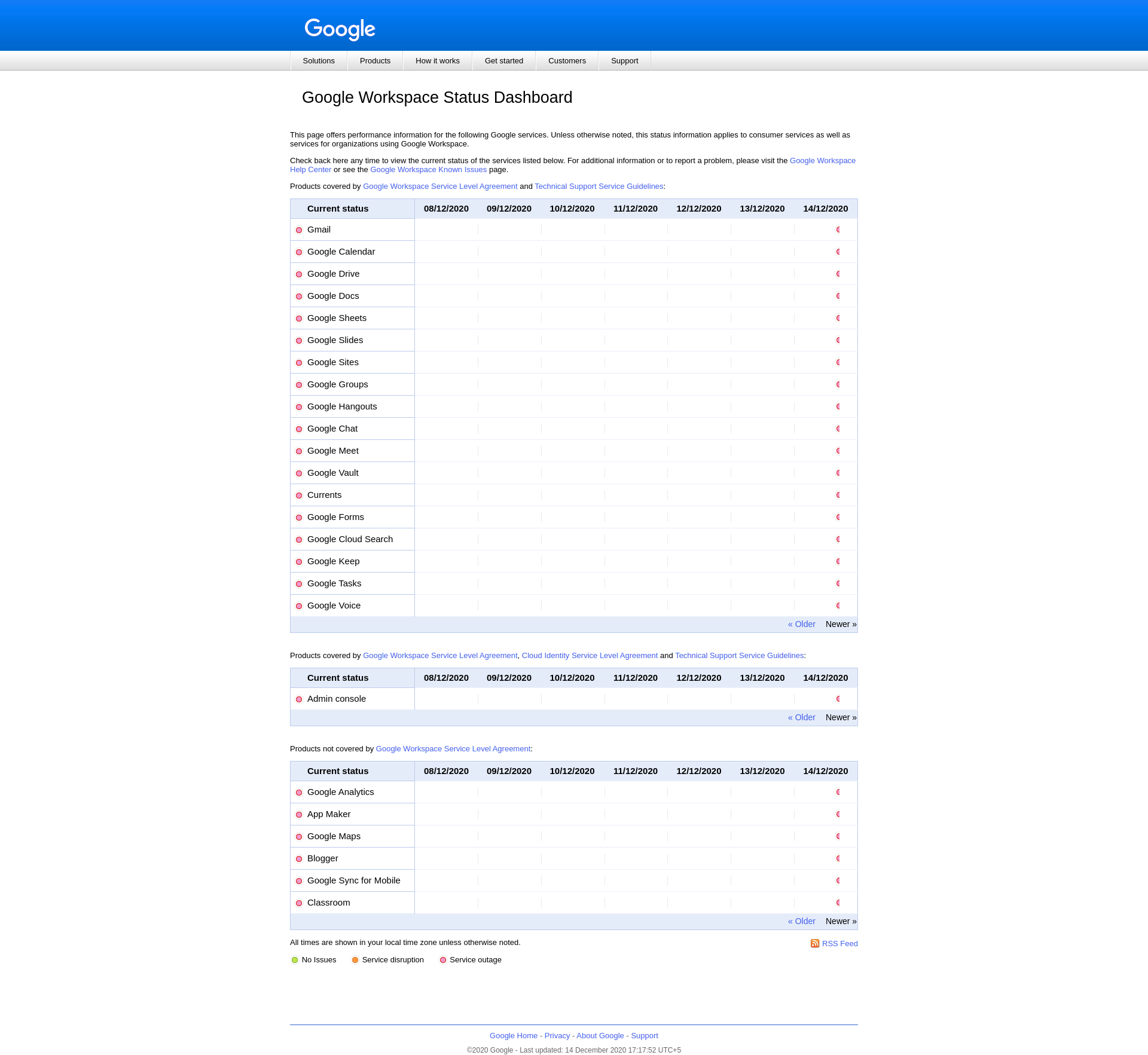 با توجه به داشبورد آنلاین Google که سلامت همه سرویس ها را ردیابی می کند ، همه جا مشکل همه سرویس های Google است.