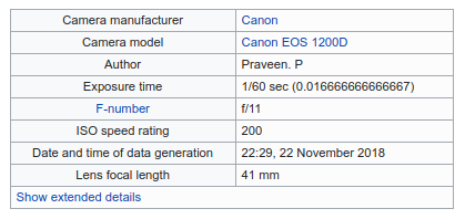 موارد زیر داده های EXIF مربوط به تصویر دوربین است که اطلاعات مهم را قرار می دهد.