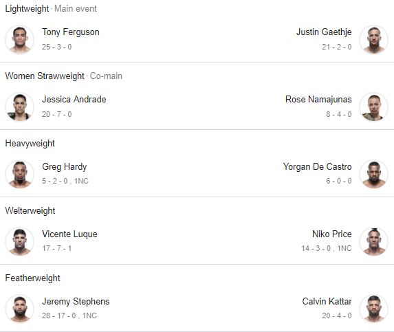 بیایید به کارت های نبرد برای وقایع UFC نگاه کنیم.